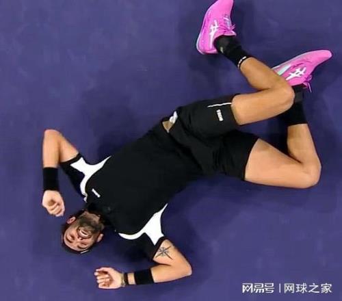 最后来猜一猜认一认。下面这张图片是一位球员赢球后倒地。不作提示,您能认出他是谁吗?