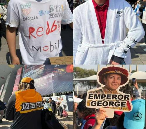 其中,排位赛中拉塞尔赛车出现故障后的逆转、梅赛德斯在直道上的连续超越、法拉利双车的轮对轮对抗、维斯塔潘在新车调校中的挣扎……都在现场不断触发不同车迷阵营之间的「应援」对抗,并随着转播镜头与社交媒体传播被迅速传播。